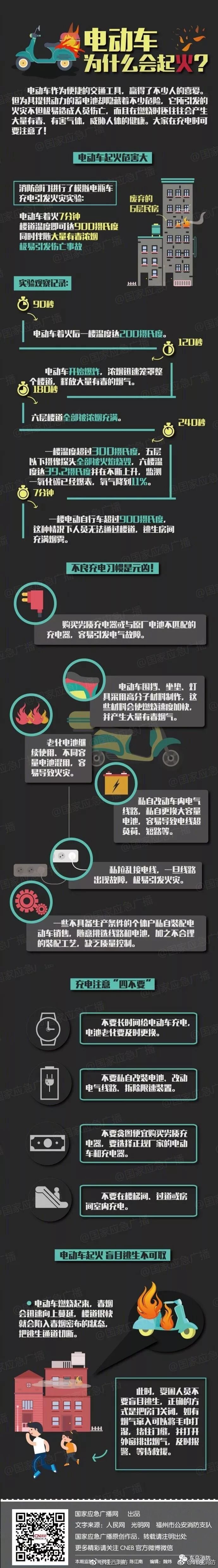 電動車作為便捷的交通工具,贏得了不少人的喜愛。但為其提供動力的蓄電池卻隱藏著不少危險,它所引發(fā)的火災(zāi)不但極易造成人員傷亡,而且在燃燒時還往往會產(chǎn)生大量有毒、有害氣體,威脅人體的健康。提醒:電動車在充電時可要注意了!